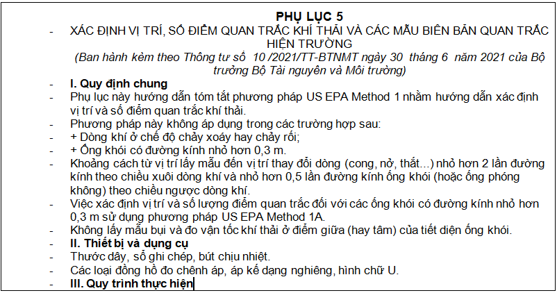 Nguyên tắc: vị trí lỗ lấy mẫu phải nằm trên mặt phẳng tiết diện của đoạn ống khói thẳng