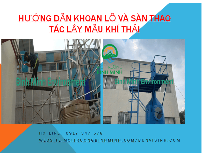 Công ty môi trường Bình Minh chuyên thiết kế, thi công lắp đặt khoan lỗ và sàn thao tác lấy mẫu khí thải. Nếu bạn cần đơn vị khoan lỗ và sàn thao tác lấy mẫu khí thải đúng quy định, uy tín hãy liên hệ ngay đến chúng tôi để được hỗ trợ, tư vấn miễn phí.