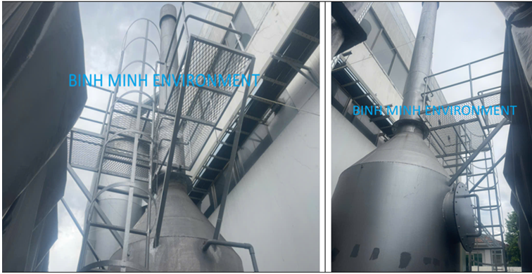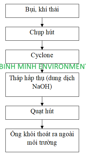 Sap khi qua tháp hấp thụ, dòng khí sạch theo ống khói ra ngoài. Dòng khí thải thoát ra đạt quy chuẩn QCVN 19:2009/BTNMT, cột B.