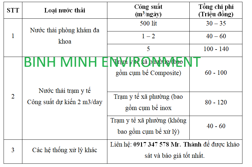Công ty môi trường Bình Minh với hơn 10 năm kinh nghiệm trong xử lý nước thải. Nếu đang có nhu cầu lắp đặt, thi công hệ thống xử lý nước thải y tế bạn có thể liên hệ qua Holine: 0917 347 578 để được hỗ trợ báo giá sớm nhất.
