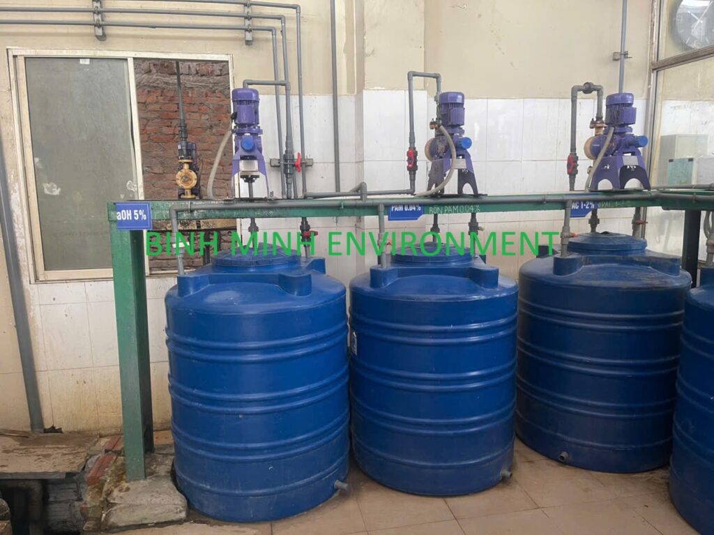 - NaHCO3 99% Mỗi lần pha 1 kg đổ trực tiếp vào đầu bể vi sinh hiếu khí Aerotank TK03 để tăng pH của bể vi sinh duy trì trong mức 6.8 – 7.5.
