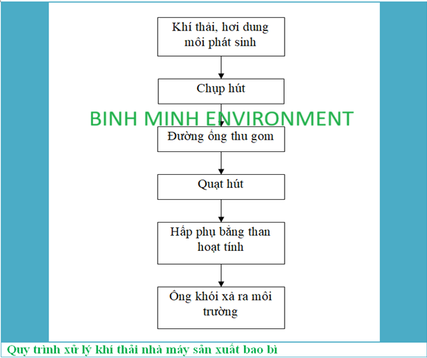 Từ những tác hại trên, các nhà máy sản xuất bao bì cần lắp đặt hệ thống xử lý khí tahri đạt chuẩn, để đảm bảo các chỉ tiêu ô nhiễm nằm trong giới hạn cho phép của môi trường. Sau đây, Công ty môi trường Bình Minh xin đưa ra Quy trình xử lý khí thải khí thải hơi dung môi nhà máy sản xuất bao bì gần đây nhất mà công ty đã tiến hành lắp đặt.