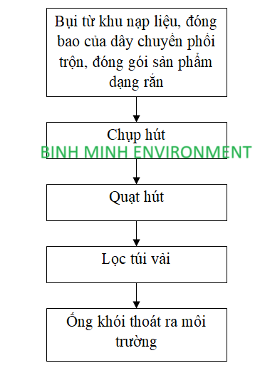 Sau đây công ty môi trường Bình Minh đề xuất hệ thống xử lý bụi cho nhà máy sản xuất phân bón hữu cơ, quy trình xử lý như sau: