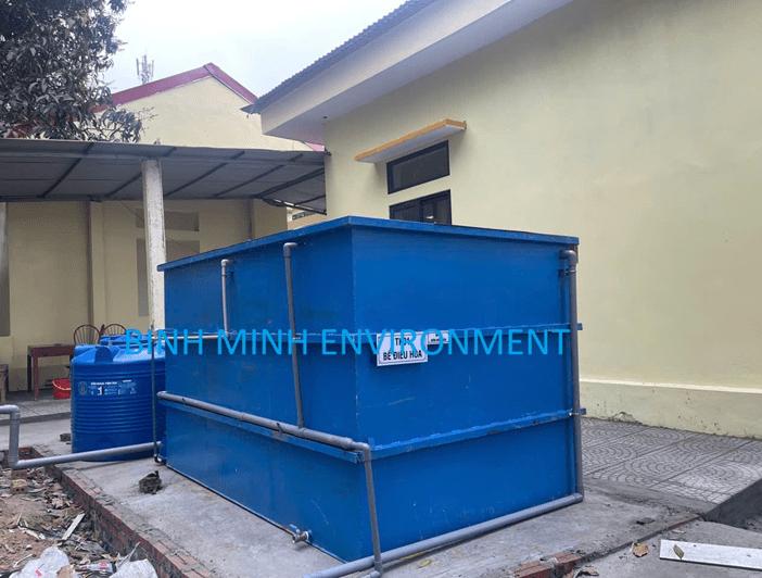 - Bể điều hòa: Nước thải được bơm vào bể điều hòa để ổn định lưu lượng và ộng độ các chất ô nhiễm. Điều này rất quan trọng vì hoạt động của phòng khám nha khoa không liên tục, dẫn đến lưu lượng nước thải không đều.