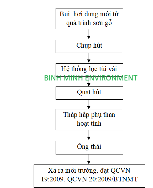 Sơ đồ công nghệ xử lý bụi và hơi dung môi từ công đoạn sơn gỗ