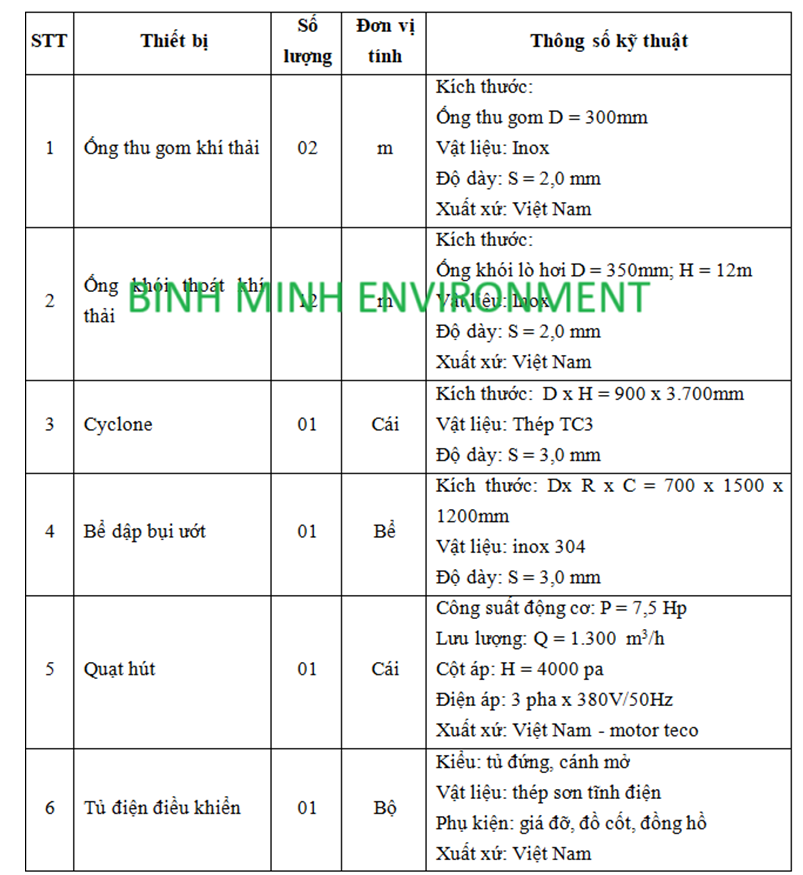 Một số thông số kỹ thuật khi cần thiết kế, thi công hệ thống xử lý khí thải lò hơi